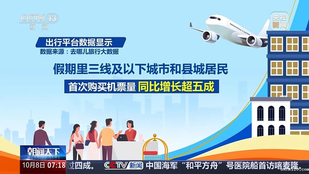 Travel is more convenient this holiday, with many cities building new airports and adding new routes to provide more choices for tourists. Data from travel platforms show that during the holiday, the number of first-time air ticket purchases by residents in third-tier and lower cities and county towns increased by more than 50% year-on-year, and the number of outbound travel orders increased by nearly 3 times year-on-year.