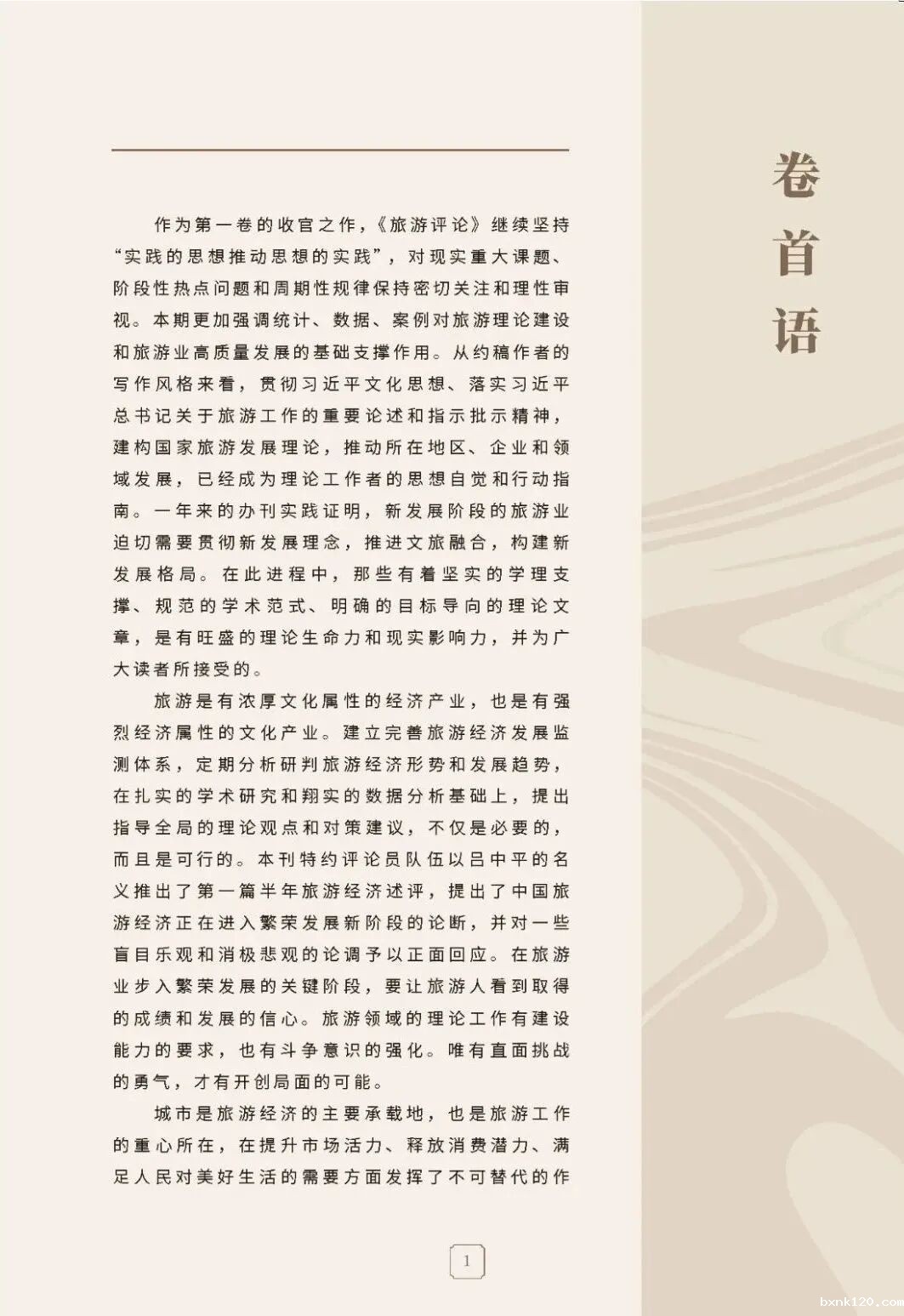作为第一卷的收官之作,《旅游评论》继续坚持“ 实践的思想推动思想的实践”,对现实重大课题、阶段性热点问题和周期性规律保持密切关注和理性审视。本期更加强调统计、数据、案例对旅游理论建设和旅游业高质量发展的基础支撑作用。从约稿作者的写作风格来看,贯彻习近平文化思想、落实习近平总书记关于旅游工作的重要论述和指示批示精神,建构国家旅游发展理论,推动所在地区、企业和领域发展,已经成为理论工作者的思想自觉和行动指南。一年来的办刊实践证明,新发展阶段的旅游业迫切需要贯彻新发展理念,推进文旅融合, 构建新发展格局。在此进程中,那些有着坚实的学理支撑、规范的学术范式、明确的目标导向的理论文章,是有旺盛的理论生命力和现实影响力,并为广大读者所接受的。