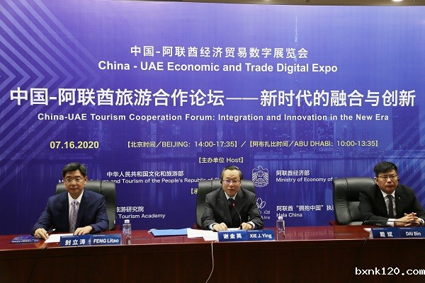 7月16日,中国-阿联酋旅游合作论坛在线上召开。论坛围绕“新时代的融合与创新”主题展开,以线上研讨+线上展示方式进行。论坛由中国文化和旅游部与阿联酋经济部共同主办,中国旅游研究院、阿联酋“拥抱中国”执委会和中国国际展览中心集团公司共同承办。此次论坛是于2020年7月15日至7月21日举行的首届中国—阿联酋经济贸易数字博览会的核心板块,邀请中阿双方文化和旅游主管部门、文化和旅游的相关企业及相关机构参加,并引荐双方领先的文化和旅游项目在此次数字博览会上进行展览。