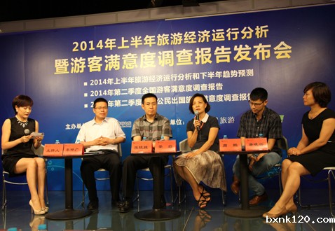 2014年7月9日由中国旅游研究院主办,人民网旅游频道、旅游卫视协办的2014年上半年旅游经济运行分析暨游客满意度调查报告发布会在人民网演播室举行。中国旅游研究院院长戴斌教授、北京市旅游委员会政策法规处调研员姜岩、中国国际旅行社总社有限公司总裁助理张陵捷、百度搜索引擎营销部高级营销总监周鹏、中国旅游研究院产业所所长李仲广副研究员、国家旅游经济实验室负责人唐晓云副研究员等参加了发布会。来自人民日报、新华社、中央电视台、中国国际广播电台、中国日报、经济日报、中国旅游报、中国网、央视网、中国旅游网、搜狐网、凤凰网、蓝海电视、旅行社杂志等媒体机构的代表也参加了发布会。