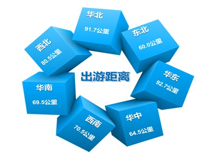 “五一”小长假期间全国乡村游平均出游距离69.9公里,其中出游距离最长和最短的分别为北京和黑龙江地区游客,其乡村游出游距离分别为131公里和60公里。分区域来看,华东地区游客出行距离最长,平均达92.7公里;其次为华北地区,出游距离为91.7公里;东北地区游客乡村游出行距离最短,为60公里。