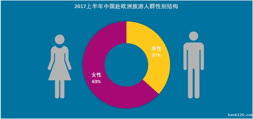 1、赴欧洲旅游女性占比63%,欧洲游的女性主导现象愈加显著