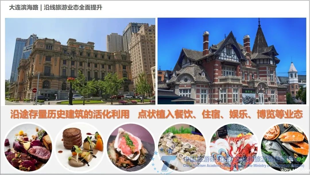 A coastal road connects a century of Dalian history. On Binhai Road, the existing historical buildings along the road are revitalized, and catering, accommodation, entertainment, exhibition and other business formats are implanted in spots. In the future, with Dalian's tourism and urban development, Dalian seafood local dishes can be selected, N+ local Michelin-starred restaurants can be hatched, and Northeastern China can be assisted. The collision of Asian and European creative cuisine has made Dalian cuisine a new symbol.