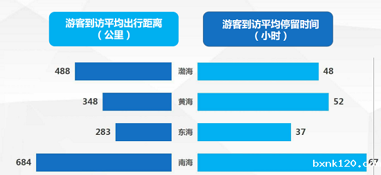 南海地区游客平均年龄略高于其他海域,但是平均停留时间和游客出行距离都远远高于其他海域。相比较而言,到访问南海、东海的旅游者表现出更为强烈的消费倾向和消费能力。