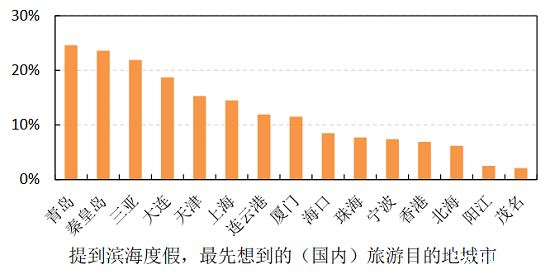 中国旅游研究院专题调研数据显示,78.4%的受访者曾经去过滨海城市度假,96%的受访者想去滨海城市度假,想去南海的占到四分之一。有意思的是,去过滨海城市度假的受访者中,有92%的对北部湾城市群有了解,但四分之三的受访者不知道北部湾城市群位于南海。而知道北部湾位于南海的受访者中99%想来北部湾旅游。尽管渤海、黄海的海水可能没有像许书记说的那样,没有南海这么“鲜”,但是更多的人提起滨海度假还是首先想到青岛、秦皇岛、大连等北方城市。