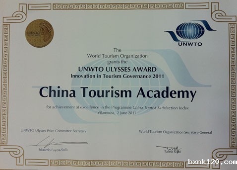 5月9日联合国世界旅游组织公布了2011年联合国世界旅游组织尤利西斯奖获奖名单。我院的“全国游客满意度调查”项目获得该奖项的政府创新奖。这是国内首个获得世界旅游组织的研究奖项。国家旅游局邵琪伟局长、杜江副局长对此给予了充分肯定,认为此奖项既是一种荣誉,更是我国旅游管理创新与旅游学术成果面向世界的一次重要展示。